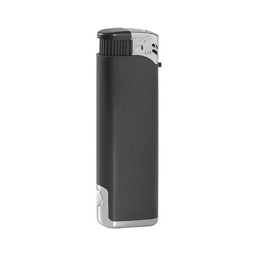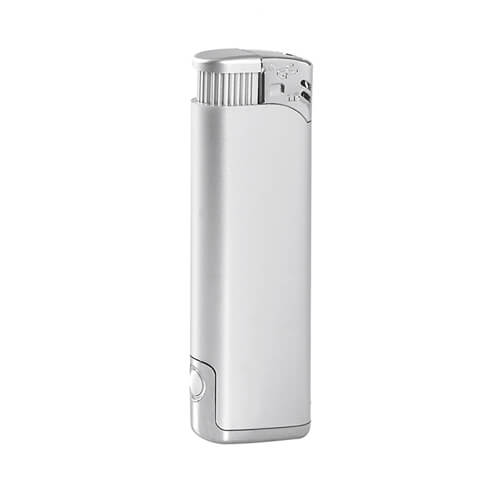 Accendino piezoelettrico con torcia alta luminositĂ 1 led. Dimensioni: cm 2,2x8 ca - materiale: plastica solid e metallo. Colori disponibili: bianco, blu, nero, argento.