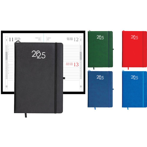 Agenda Giornaliera con Copertina in PU Riciclato e Porta Penna: Questa agenda giornaliera per il 2025 è realizzata con una copertina in PU riciclato, arricchita da eleganti impunture perimetrali e un pratico porta penna. L'interno è composto da carta riciclata da 65 g/m², perfetta per chi cerca un prodotto sostenibile e di qualità . Completa di segnalibro per una maggiore praticità . Completa la tua promozione con una penna personalizzata con lo stesso logo aziendale.