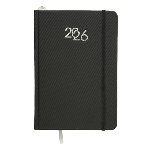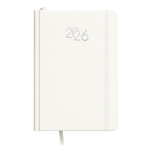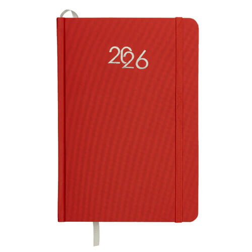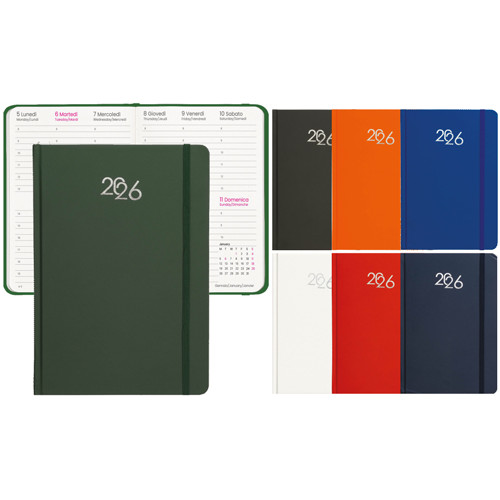 Agenda giornaliera con copertina rigida in cartoncino laminato, pratica e professionale, pensata per accompagnare la pianificazione quotidiana per un intero anno.