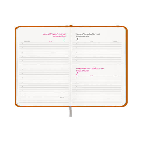 - Formato giornaliero: una pagina dedicata a ogni giorno, per una gestione dettagliata degli impegni.