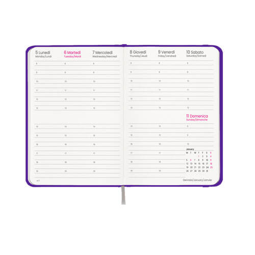 - Elastico di chiusura: mantiene l’agenda chiusa in modo sicuro e ordinato.