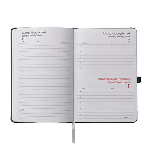 Agenda Giornaliera con Copertina Bicolore in PU+PVC: Questa agenda giornaliera è dotata di una copertina bicolore in PU e PVC, con cuciture a vista che ne esaltano il design elegante. Con 378 pagine, offre ampio spazio per la pianificazione quotidiana. Include un segnalibro in raso per un facile accesso e un pratico porta penna per una maggiore comodità . Personalizzabile con il tuo logo per promuovere il tuo brand in modo distintivo ed efficace.