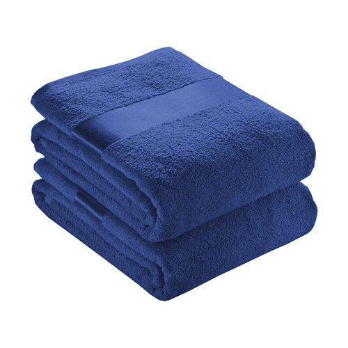 Telo spugna in cotone standard 350g, con banda per personalizzazione 90x150cm. Colori disponibili: bianco, rosso, verde, blu, giallo, arancio, blu royal, fucsia.