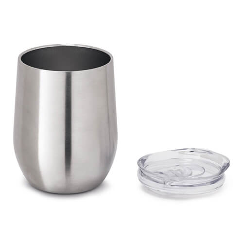 Bicchiere da viaggio da 400 ml a doppio strato in acciaio inox. fornito in scatola bianca. Dimensione: 88 mm x 112 mm colori: cromato satinato, bronzo