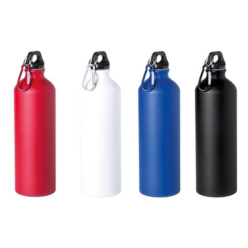 Alum Drink da 800ml. Si tratta di una borraccia in alluminio personalizzabile, con tappo di sicurezza avvitabile e rifinitura lucida. Dotata di moschettone in metallo per facilitare il trasporto e appenderla facilmente in sicurezza allo zaino, è indicata soprattutto per coloro che amano le attività all'aria aperta. Corredata con astuccio, è il gadget aziendale ideale per gli eventi sportivi e per i convegni aziendali. Molto apprezzata perché resistente, leggera e facile da trasportare. Effettuiamo la stampa del logo sulle borracce in alluminio personalizzate su un lato con serigrafia ad uno o due colori o in quadricromia.