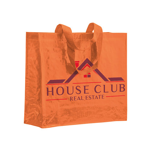Shopper in Polipropilene Laminato 120 g/m2: Questo shopper dal design robusto è ideale per l'uso quotidiano e promozionale, con manici corti a nastro extra resistenti per una maggiore durabilità .