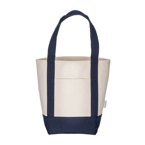 Mini borsa shopper in cotone riciclato 340 g/m², naturale e resistente, con base e manici colorati per un tocco vivace e moderno. Dotata di soffietto alla base, tasca esterna e manici corti, è perfetta per fiere, eventi o per un uso quotidiano sostenibile. Certificata GRS (Global Recycled Standard), garantisce la tracciabilità e l’origine del materiale riciclato ed è la soluzione perfetta per promuovere il tuo marchio in modo responsabile e autentico.