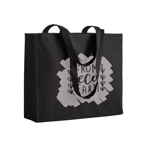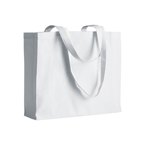 Shopper in Cotone Pesante 220 g/m²: Questa shopper è realizzata in cotone pesante di alta qualità, con una grammatura di 220 g/m², garantendo resistenza e durabilità. Dotata di manici lunghi e soffietto, è perfetta per trasportare comodamente oggetti di varie dimensioni.