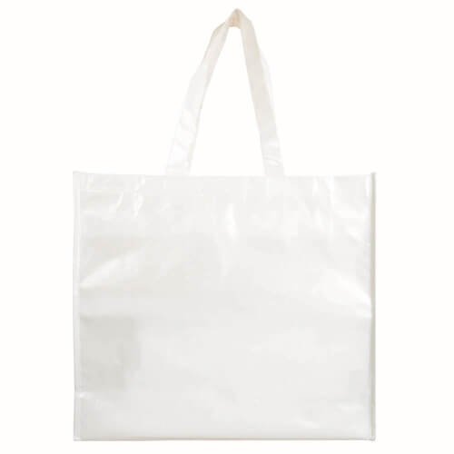Shopper in TNT Laminato Lucido: Questa shopper è realizzata in TNT laminato lucido, offrendo una finitura elegante e resistente. Dotata di manici lunghi e finiture cucite, è perfetta per trasportare i tuoi acquisti con stile e praticità .
