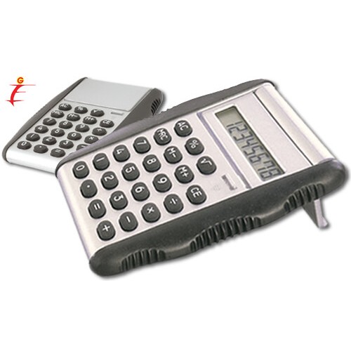 Calcolatrice con impugnatura e tasti in gomma (originale sistema di apertura press-up del copri display) (9,5x7,3x1,1).