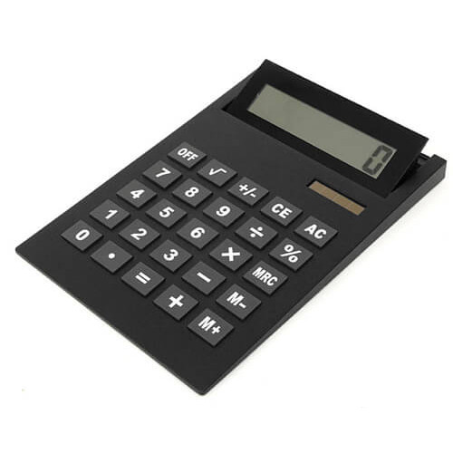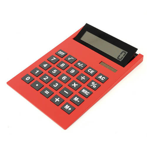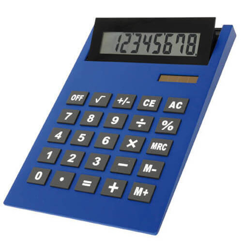Maxi-calcolatrice da tavolo display reclinabile doppia alimentazione (solare/batteria) (21 x 29,5 cm). Disponibile nei colori: Blu, rosso, arancione, nero, argento.