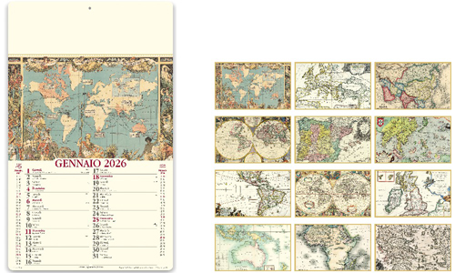 Calendario mensile da 12 fogli, carta avorio 70gr. e testata rinforzata. Festività internazionali. Dimensioni cm 31x52,5.