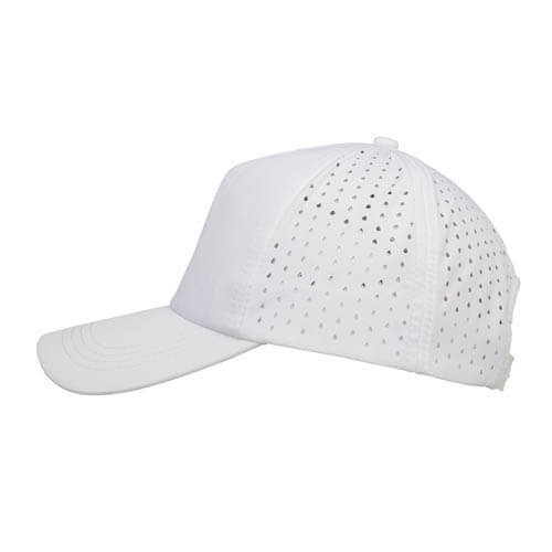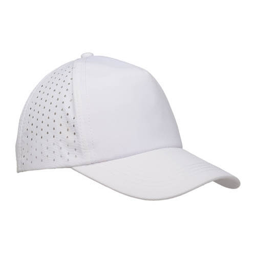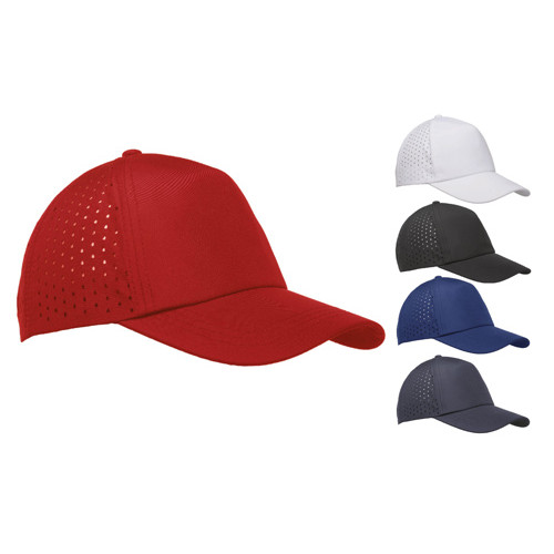 Cappellino da baseball in poliestere composito, leggero e traspirante, ideale per attività sportive, eventi promozionali o uso quotidiano. La struttura a 5 pannelli e la calotta forellata garantiscono comfort e ventilazione ottimale, mentre la chiusura regolabile con clip in plastica assicura una vestibilità perfetta. Questo cappellino promozionale è pratico e durevole, perfetto per eventi aziendali, team sportivi o campagne pubblicitarie all’aperto.
