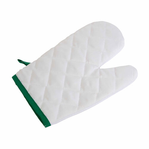 Guanto da forno. Taglia unica - materiale cotone e poliestere dimensioni 29x19 ca, colori disponibili: rosso, verde, giallo, blu.