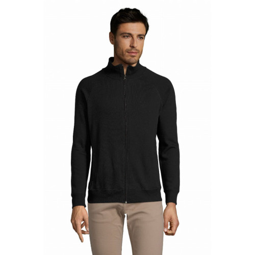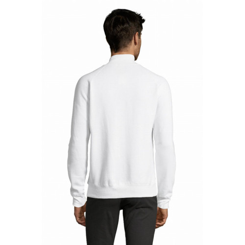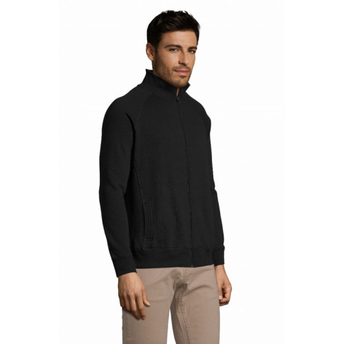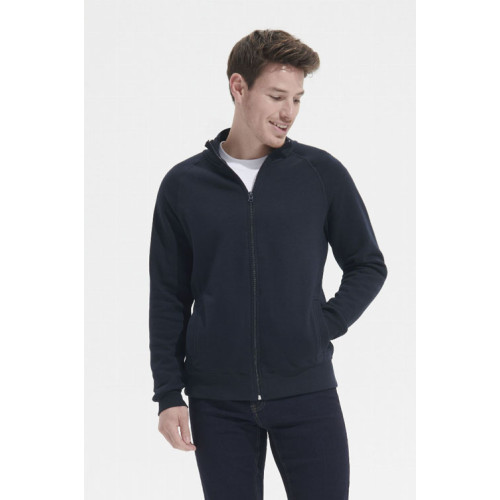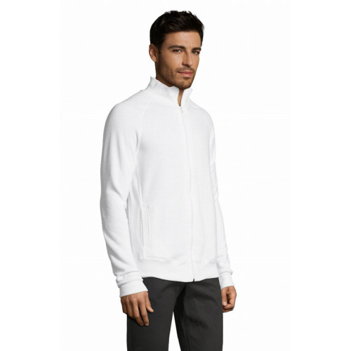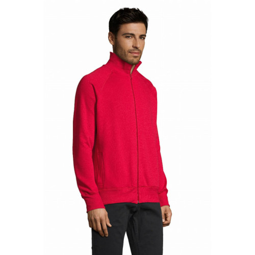 Felpa uomo con zip, stile classico. Felpa Spazzolata 280gr. 50% cotone - 50% poliestere, interno garzato. Polsini, collo e fondo del capo con bordo in costina 2x2 con elastan. Collo alto, manica a raglan e due tasche laterali. Taglie S - M - L - XL - XXL. Colori disponibili: Bianco, Blu navy, Grigio scuro melange, Nero, Rosso.