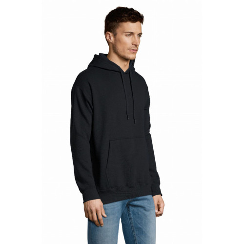 Felpa unisex con cappuccio – Felpa con cappuccio realizzata in tessuto pesante di alta qualità e disponibile in diversi colori. Prodotto essenziale. – Polsini e fondo a coste in elastan Tasca a marsupio Cappuccio con cordini in tinta Tubolare