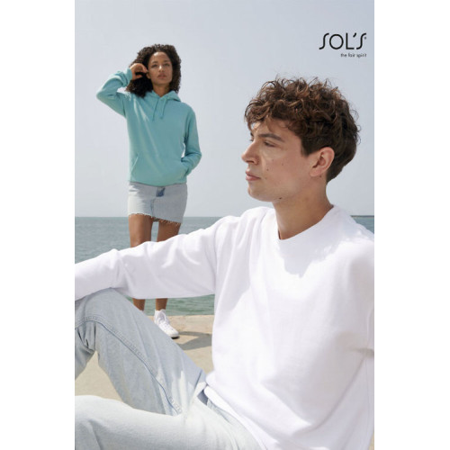 Felpa unisex girocollo – garzata 280 - Girocollo Maniche montate Tagliata e cucita Polsini, collo e fondo del capo a costina 1x1 Mezzaluna e nastro di rinforzo in jersey sul collo