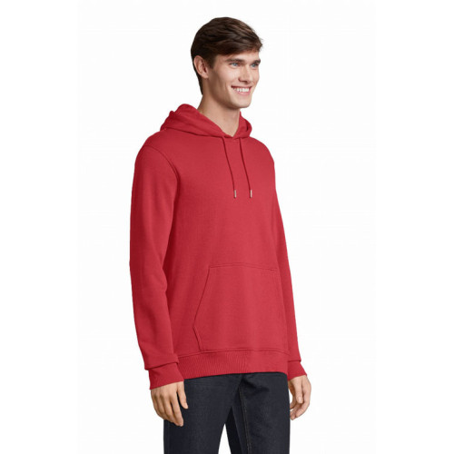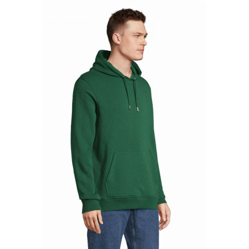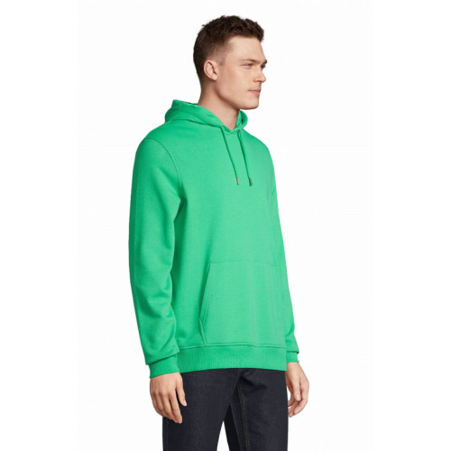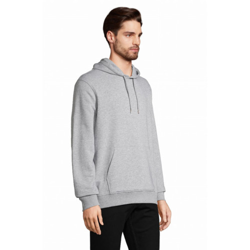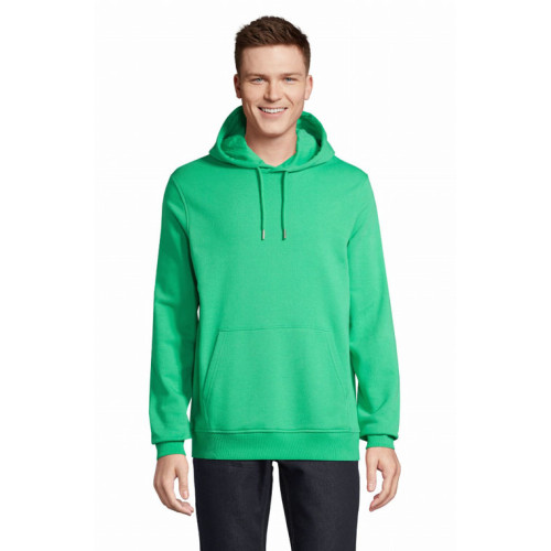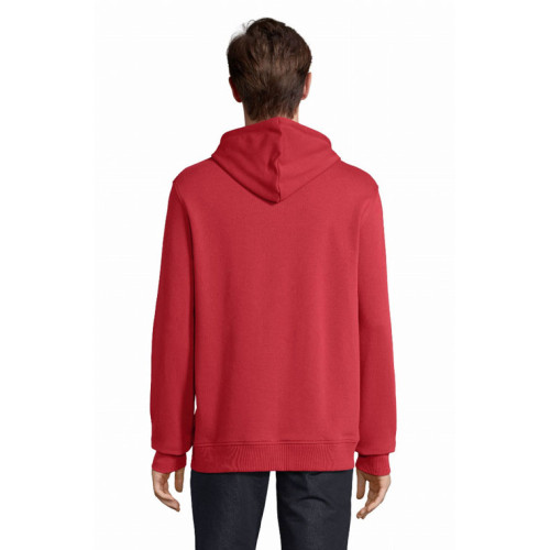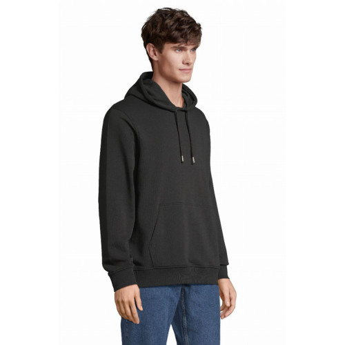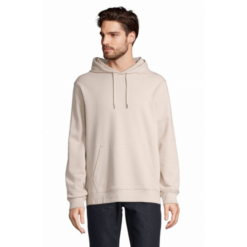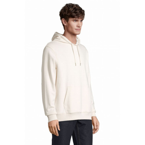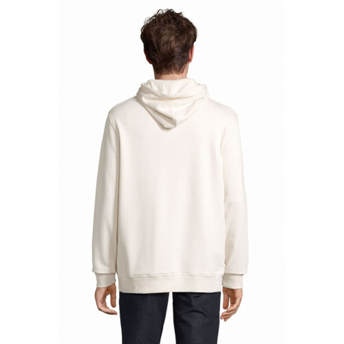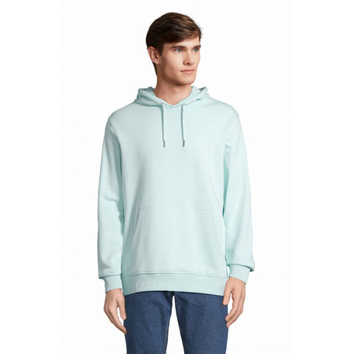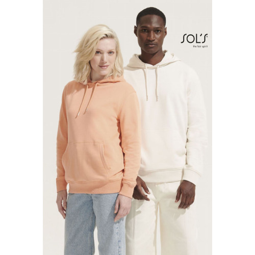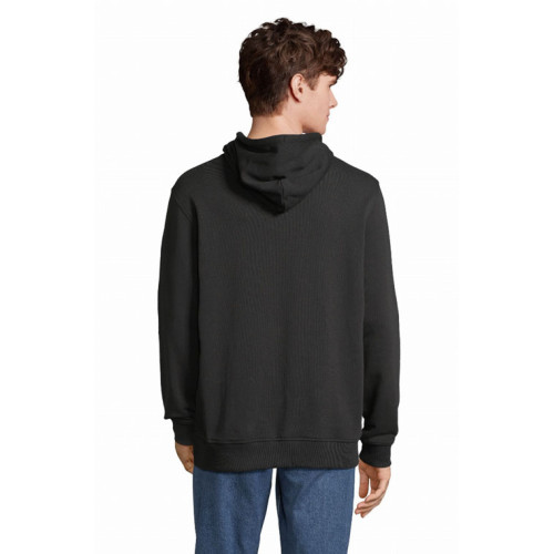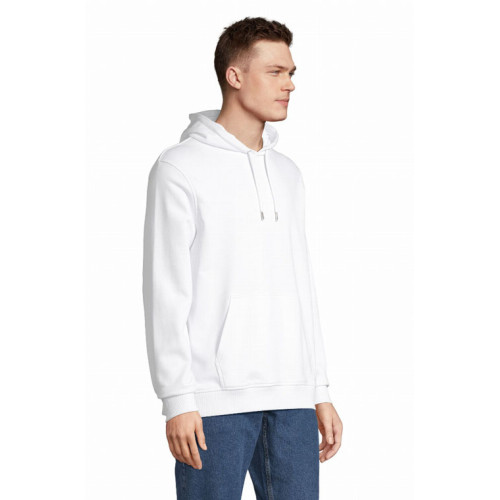 Felpa unisex con cappuccio – terry 320 - Tagliata e cucita Maniche montate Polsini e fondo del capo a costina 2x2 Tasca a marsupio Mezzaluna e nastro di rinforzo in jersey sul collo Cappuccio doppio tessuto in jersey Cordino con occhielli e farmacorda in metallo