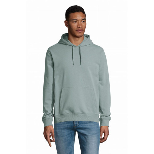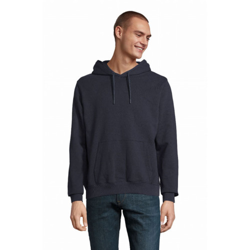Felpa uomo french terry con cappuccio – terry 400 - Questa felpa con cappuccio in spugna è un vero must-have che si abbina agli outfit più sportivi, ma anche ai look casual chic. – Tasca a marsupio Cappuccio con cordini Polsini e fondo del capo in costina 2x2 Mezzaluna sul collo Nastro di rinforzo sul collo Occhielli e stopper tono su tono
