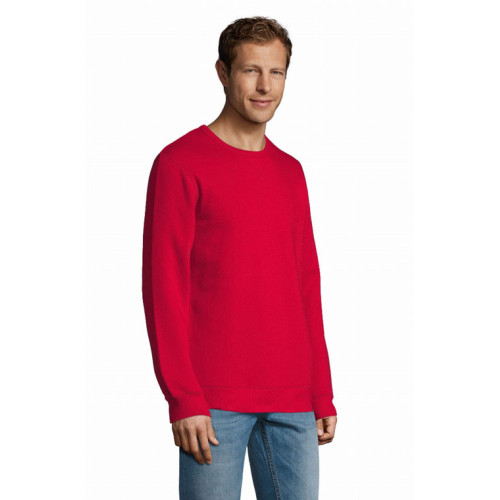 Felpa uomo girocollo – garzata 280 - Girocollo con cucitura a vista a «X» Polsini, collo e fondo del capo a costina 2x2 Maniche montate Tagliata e cucita Mezzaluna e nastro di rinforzo sul collo