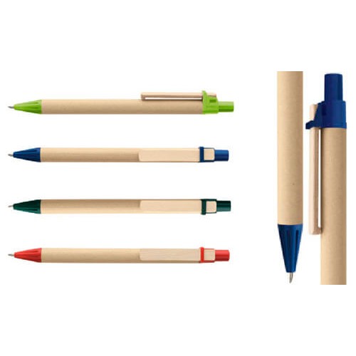 Penna a sfera in carta kraft con clip in legno, un'alternativa sostenibile ed elegante per la scrittura quotidiana. Perfetta per aziende che desiderano promuovere un'immagine eco-friendly con un gadget pratico e ricercato.
