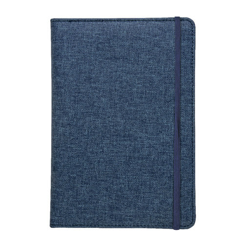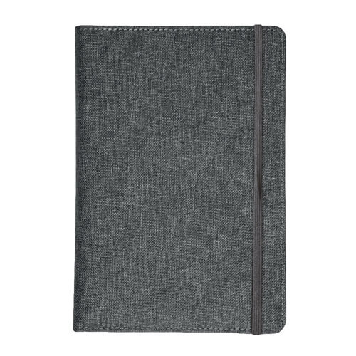 Quaderno con copertina in R-Pet, con elastico, fogli a righe color bianco, 80 pag., 14,5X21 cm. Dimensione: 14,5 X 21 CM. Materiale: RPET. Colori: Blu, Grigio