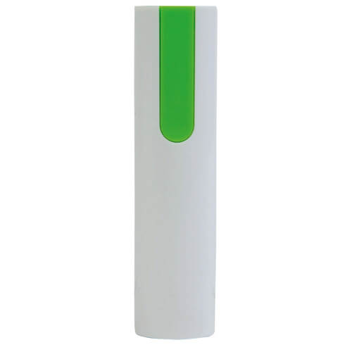 Power bank 2600 mAh finiture colorate in plastica, Colori disponibili: nero, rosso, arancio, verde mela, azzurro. Dimensioni: diametro 2,4 CM lunghezza 9,8 CM.