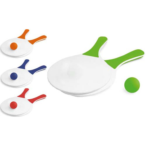 Racchettoni da spiaggian in MDF con pallina. Dimensione: ø190 x 330 x 5 mm colori: blu, rosso, verde chiaro, arancione