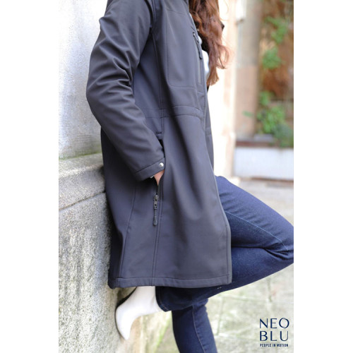 Giacca donna softshell long – softshell 270 - NEOBLU ACHILLE è un giaccone softshell con fodera in pile, l'alleato perfetto per chi lavora all'aperto: caldo, impermeabile e ben pensato per tenere al riparo da freddo e pioggia. Perfetto abbinamento tra stile e tecnicità . – Chiusura full zip nera e impermeabile doppio cursore 2 tasche laterali e 1 tasca sul petto con zip nere e impermeabili Tirazip neri Cappuccio removibile con zip regolabile con cordino e ferma cordino neri Visiera parapioggia Polsini regolabili con bottoni a pressione neri Taglio confortevole