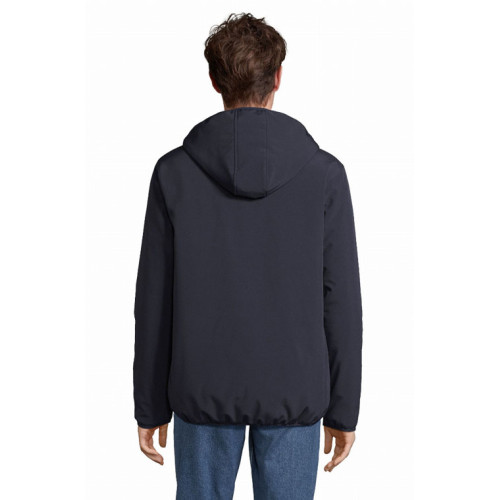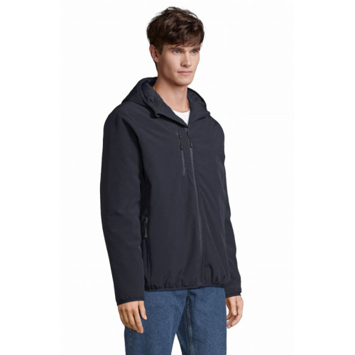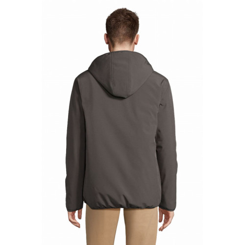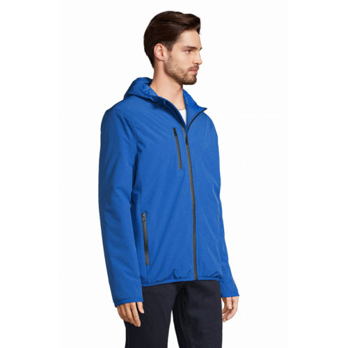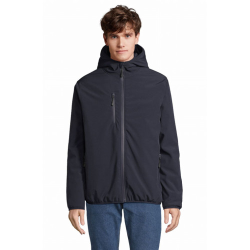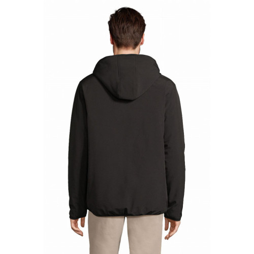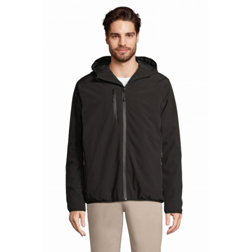 Giacca uomo softshell – Softshell invernale interamente imbottito Cappuccio con bordo elasticizzato Chiusura centrale, tasche laterali e taschino sul petto con zip in nylon impermeabile nera 3 tasche interne Zip per la personalizzazione Polsini e fondo elasticizzati tono su tono