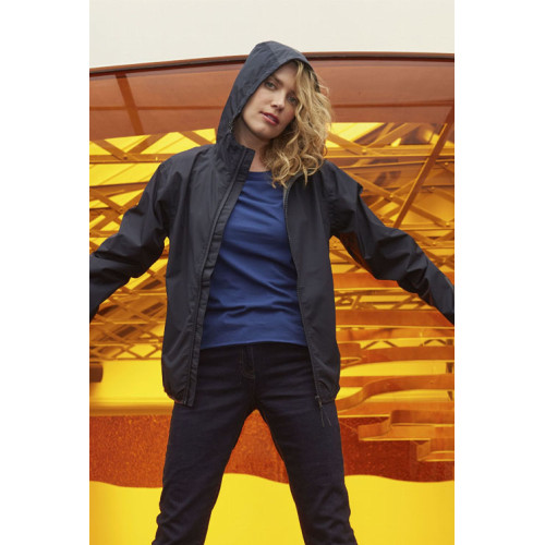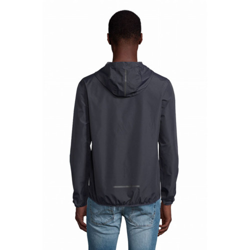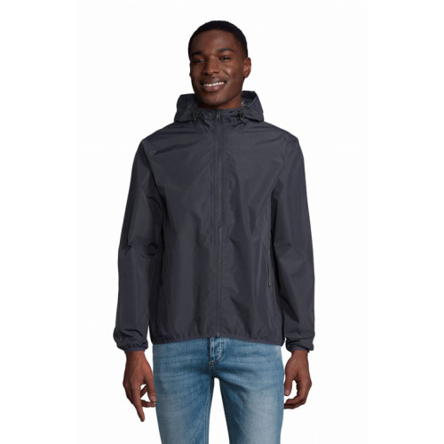 Giacca unisex antivento – Pratica, questa giacca a vento è leggera, totalmente impermeabile e alla moda. Né pioggia né vento possono penetrare: sia il fondo che le maniche sono elasticizzati. E gli elementi riflettenti la rendono essenziale per la visibilità in caso di scarsa illuminazione. In poliestere riciclato da bottiglie di plastica, NEOBLU ANDREA abbina stile e protezione dell'ambiente. – Unisex Full zip in nylon Tasche laterali con zip Cuciture termosaldate Cappuccio con cordino elastico Polsini e fondo del capo elastici Dettagli riflettenti