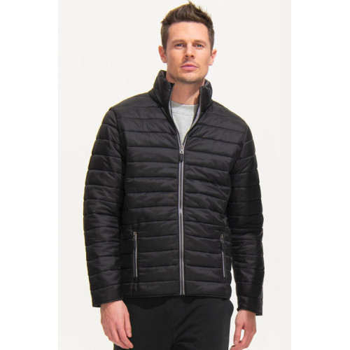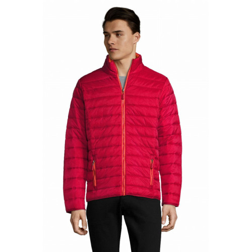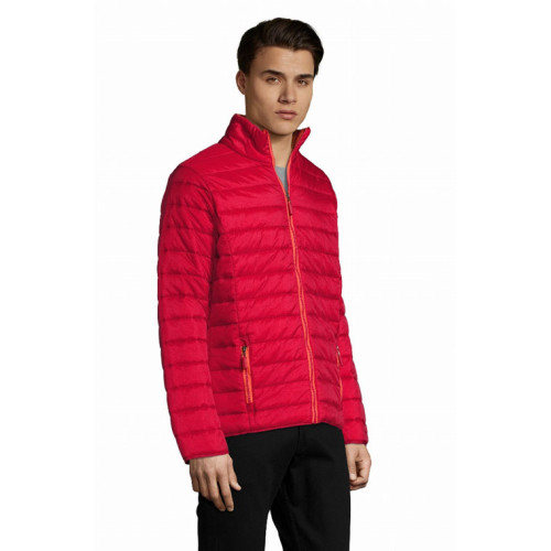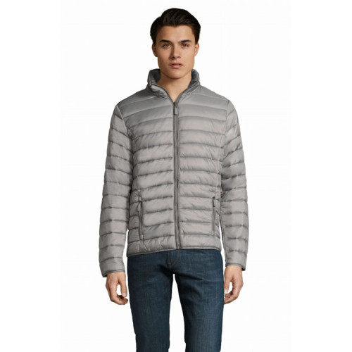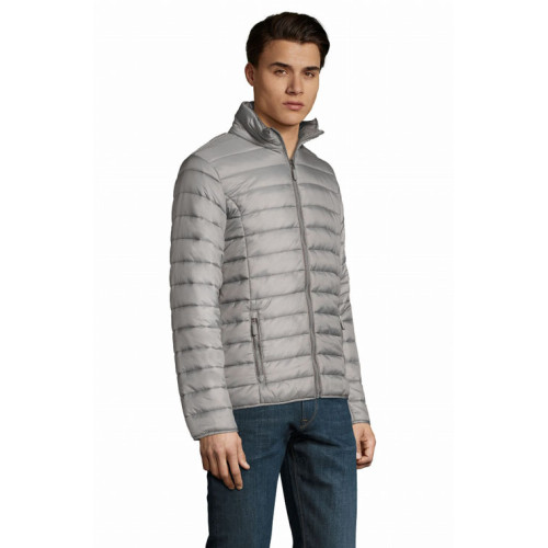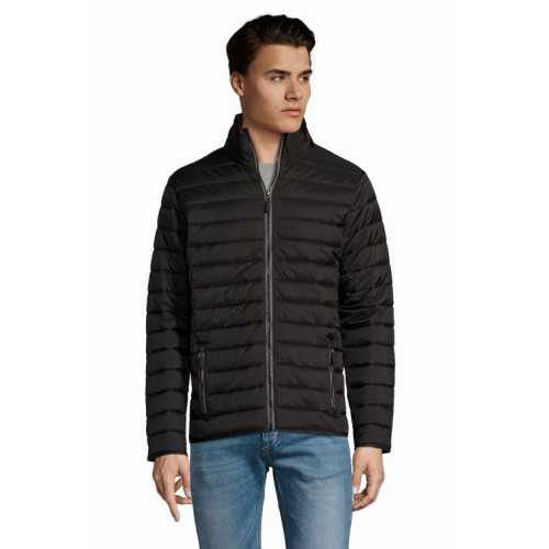 Giacca uomo imbottita leggera – Piumino leggero, taglio attillato, fodera e zip a contrasto – 2 tasche con zip rifinite a contrasto in tinta con la fodera Collo alto, taglio aderente Rifiniture tono su tono sulle maniche e sul fondo del capo