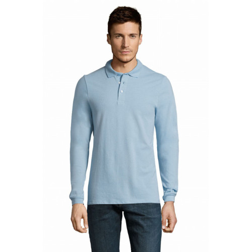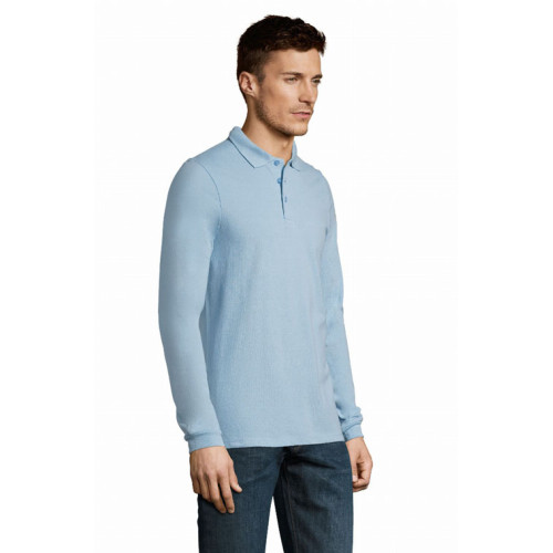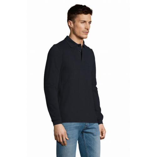Polo uomo manica lunga – Colletto e polsini a coste Fodera al collo Abbottonatura rinforzata Maniche lunghe Abbottonatura a 3 bottoni tono su tono Fondo dritto con spacchi laterali Taglio cucito Bottone di ricambio sulla cucitura laterale interna