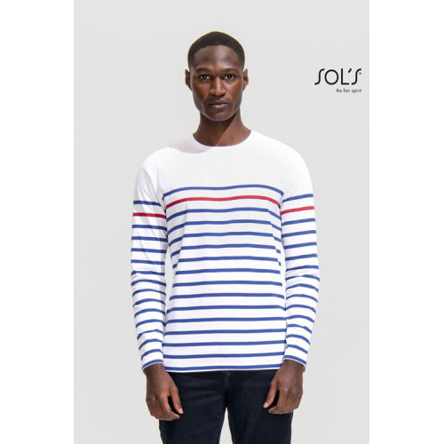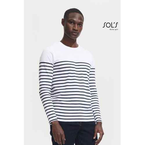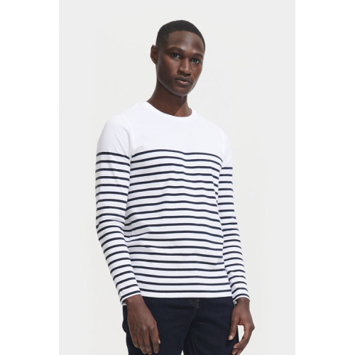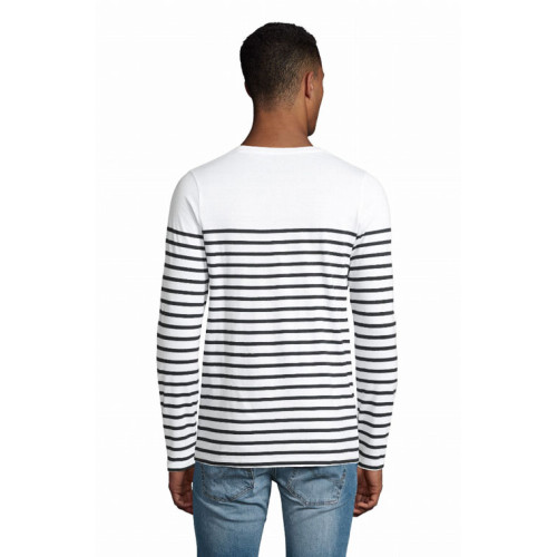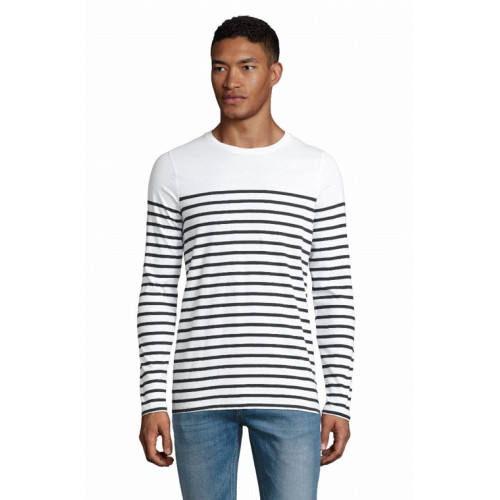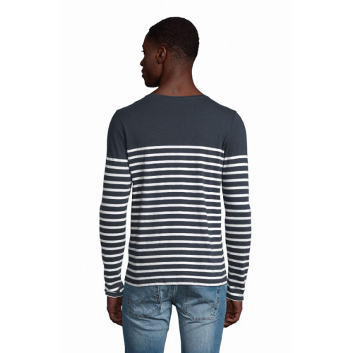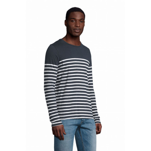 T-shirt uomo manica lunga rigata – Jersey 160 - Abbigliamento classico dello stile marinaro, confortevole e intramontabile. – Collo rotondo Taglio dritto Tagliata e cucita Strisce posizionate