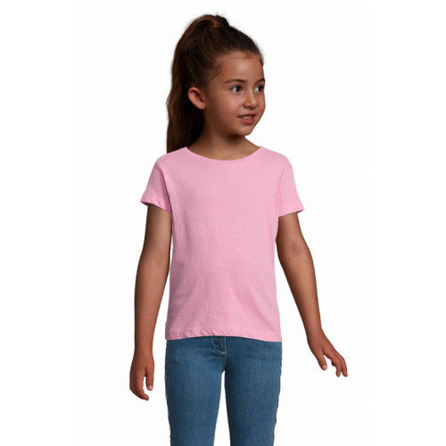 T-shirt bambina – Maniche corte Punto vita sfiancato Girocollo ribassato Tagliata e cucita Nastro di rinforzo sul collo Collo a costina con elastan