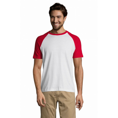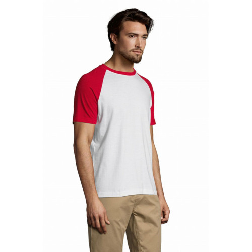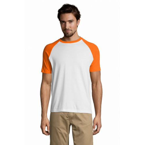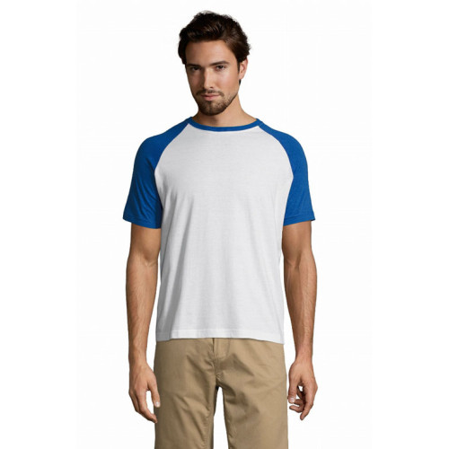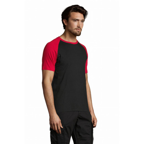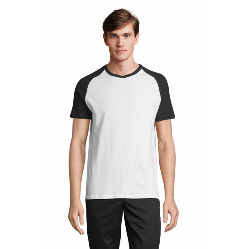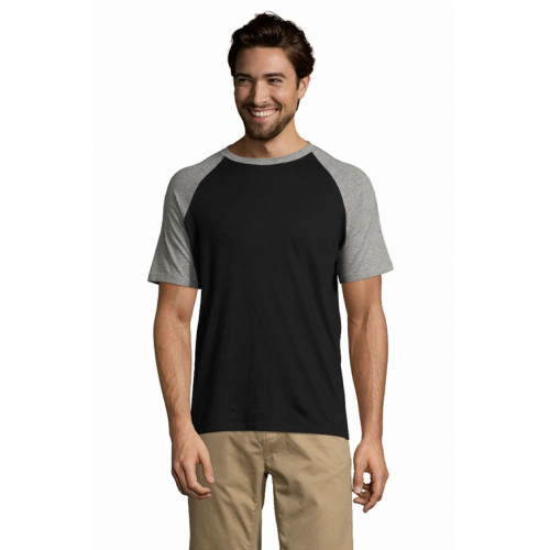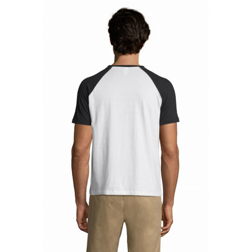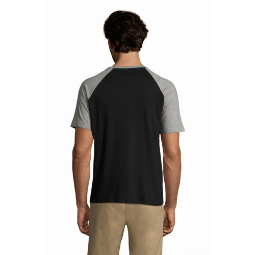T-shirt uomo bicolore manica corta a raglan – Nastro di rinforzo sul collo Girocollo con bordo a costina con elastan Maniche a raglan Tubolare