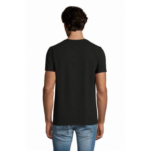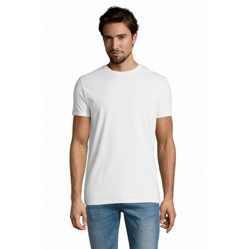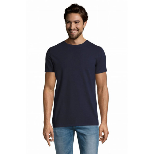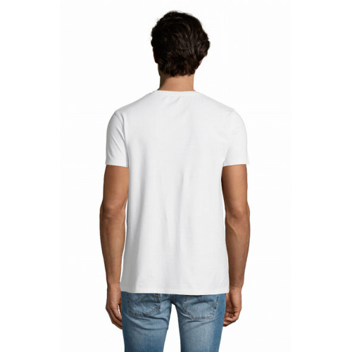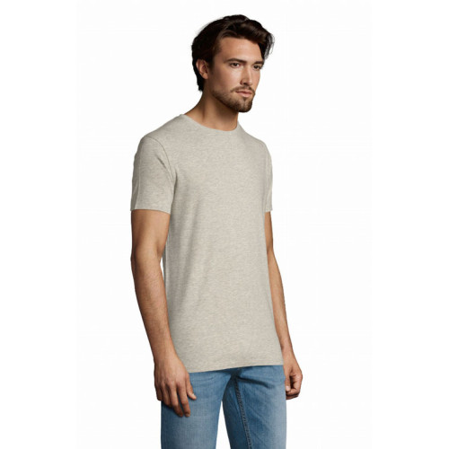 T-shirt uomo girocollo – Jersey 190 - Nastro di rinforzo sul collo Girocollo con bordo a costina con elastan Collo rotondo Tagliata e cucita Taglio aderente