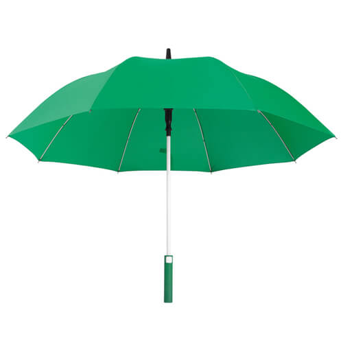 Maxi ombrello automatico con sistema di apertura meccanico di alta qualità, progettato per offrire una protezione ottimale contro la pioggia con una struttura antivento in fibra di vetro. Il manico soft touch garantisce un'impugnatura comoda e sicura, mentre la chiusura con velcro assicura una facile gestione.