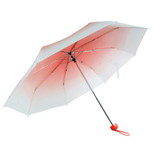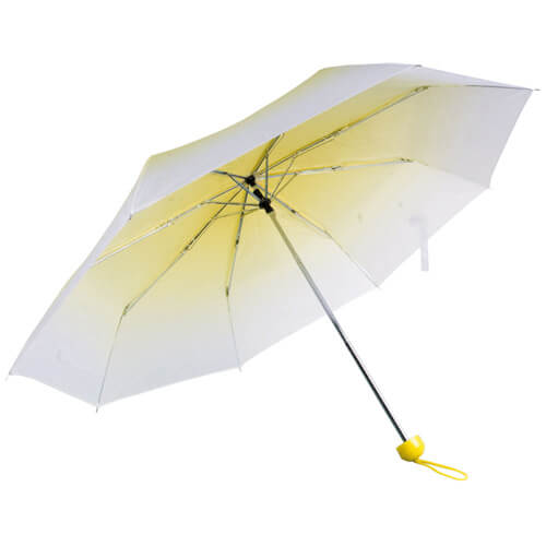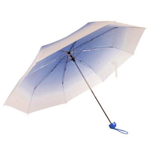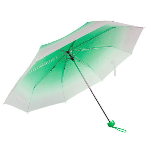 Mini ombrello manuale, sfumato, corredato ed inserito in guaina. Colori disponibili: nero, rosso, verde, blu, giallo, blu royal. Dimensione: 94 cm. Materiale poliestere.