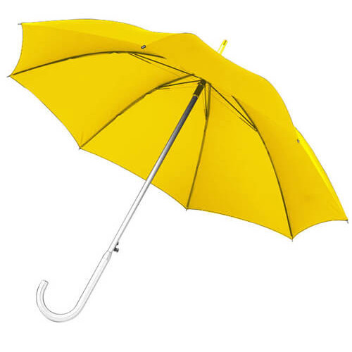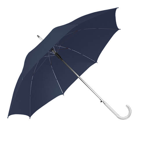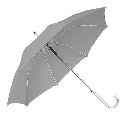 Ombrello personalizzabile automatico con struttura ultraleggera in alluminio, ad apertura automatica. Realizzato con fusto, puntale e manico curvo in alluminio. Non solo è un gadget aziendale personalizzato leggero e resistente, ma anche un ombrello di lusso che si adatta a tutte le tue esigenze promozionali. Gli ombrelli pubblicitari personalizzabili si prestano, infatti, ad innumerevoli situazioni promozionali come fiere, congressi ed eventi all’ aperto. Possono essere utilizzati sia con il sole che con la pioggia e vanno bene per qualsiasi tipo di target e settore merceologico: alberghi, negozi di abbigliamento, centri commerciali, concessionari auto. Personalizzali con la tua grafica aziendale, realizziamo la stampa in serigrafia da uno fino a quattro colori.