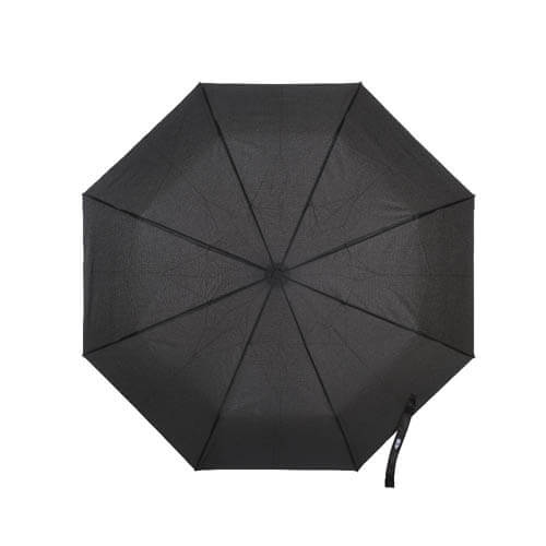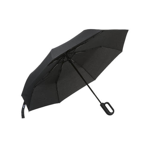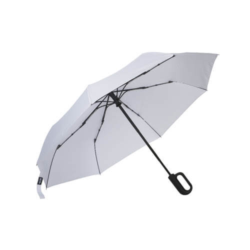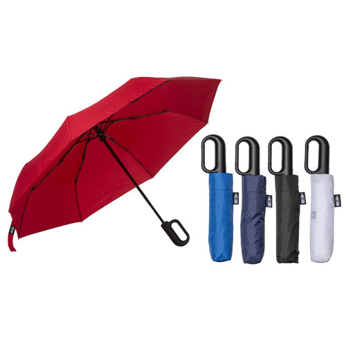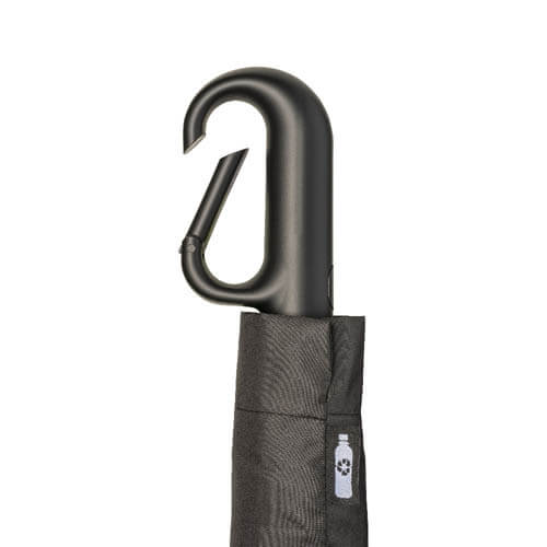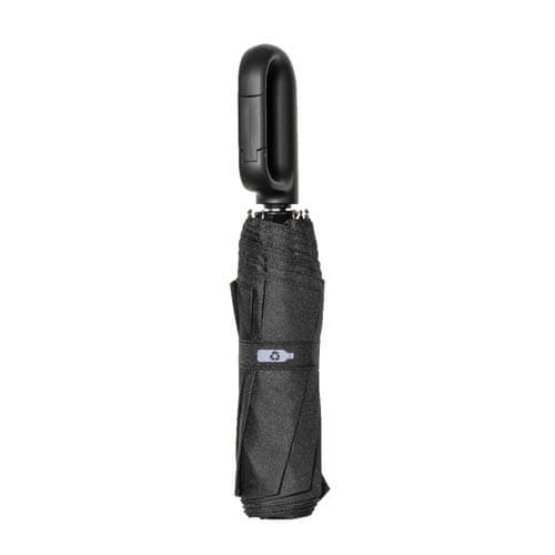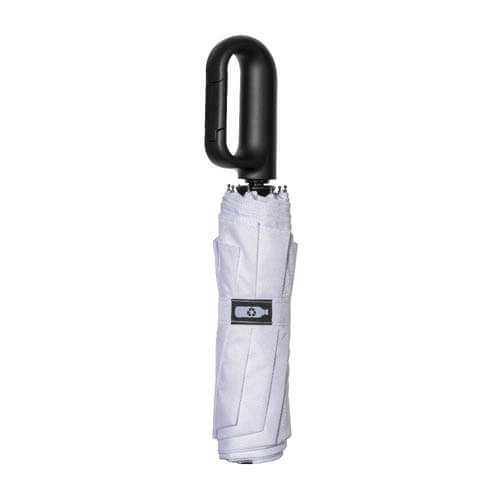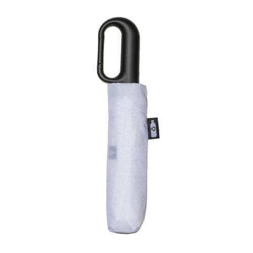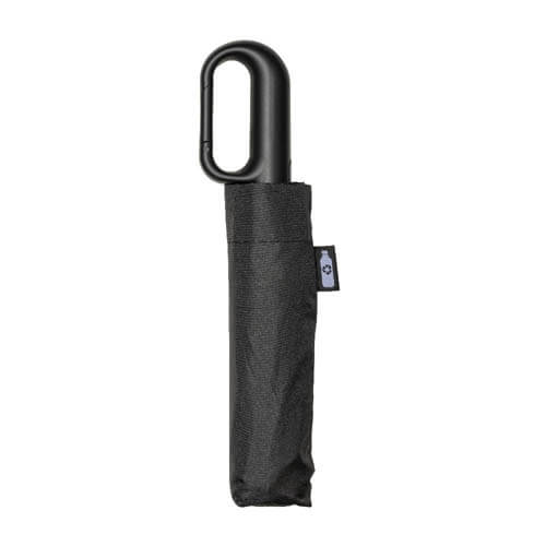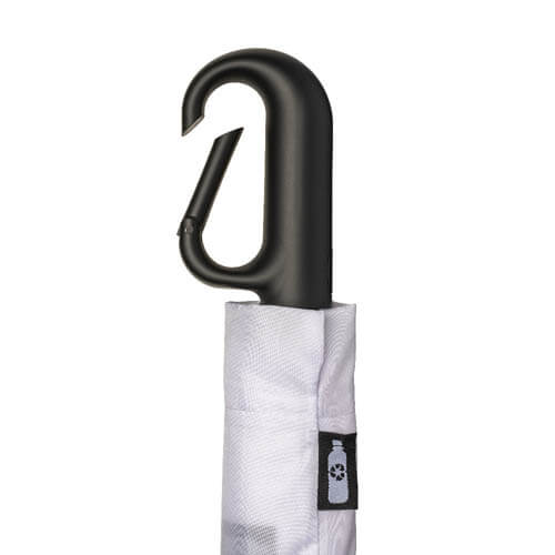 Ombrello automatico in R-PET con manico moschettone, pratico, moderno ed eco-sostenibile. Realizzato in resistente tessuto pongee derivato da PET riciclato, offre protezione affidabile e stile contemporaneo. Il manico con moschettone integrato consente di agganciarlo facilmente a borse o zaini, rendendolo ideale per l’uso quotidiano e per la mobilità urbana.