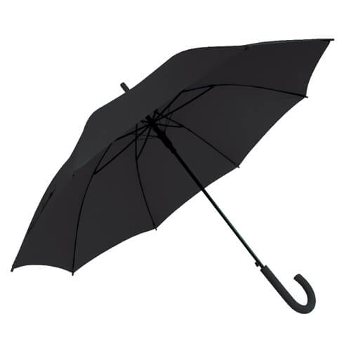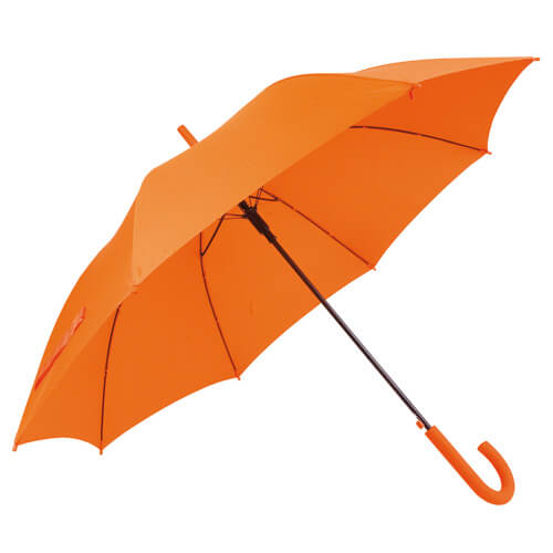 Ombrello pubblicitario da personalizzare con logo serie Trendy, con apertura automatica e manico curvo gommato. Tessuto e manico sono in colori coordinati.