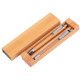 Penna con gommino touch e micromina automatica, un set elegante e raffinato, perfetto per professionisti e amanti della scrittura. Realizzata in bambù con minuterie in metallo cromato, è fornita in un astuccio in carta effetto legno per un tocco di classe ecologica.