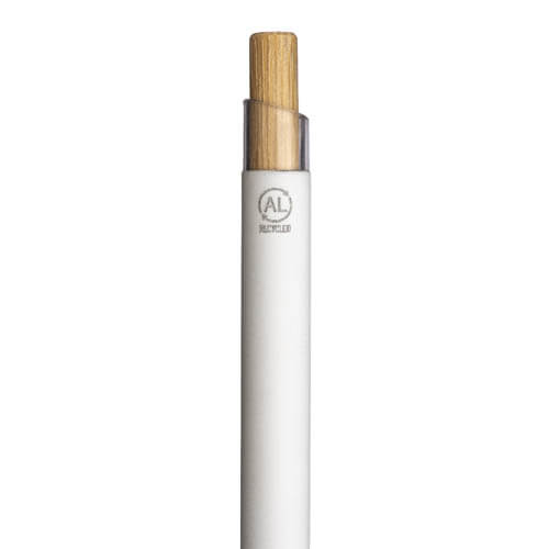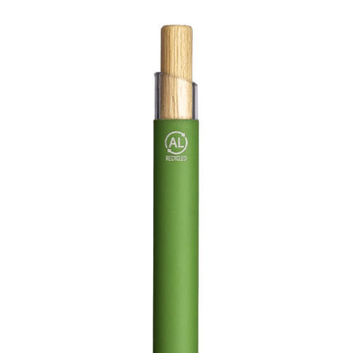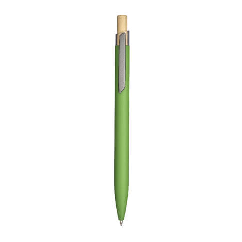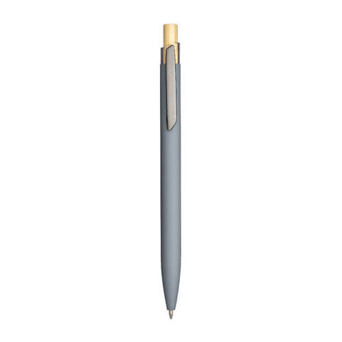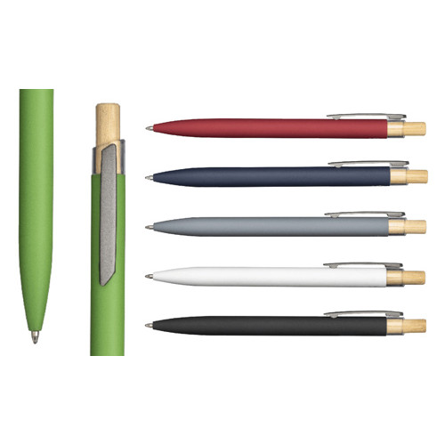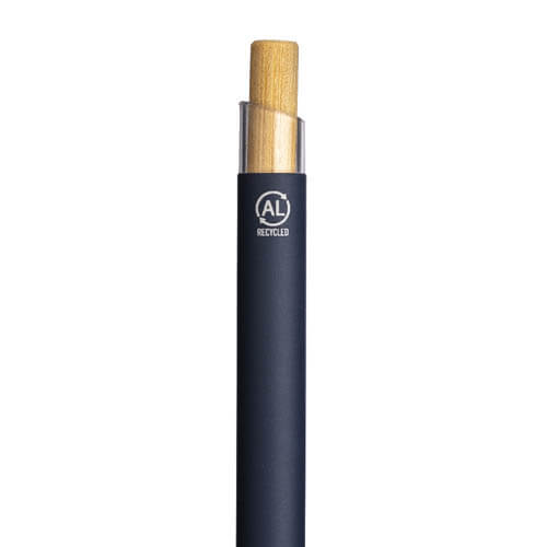Penna a scatto in alluminio riciclato gommato con pulsante in bambù e finiture brunite, elegante e sostenibile. Il corpo gommato offre una presa confortevole, mentre i materiali riciclati e naturali ne fanno un gadget eco-friendly di grande impatto visivo e tattile, perfetto per aziende che vogliono trasmettere un’immagine di classe, unendo estetica, qualità e responsabilità ambientale.