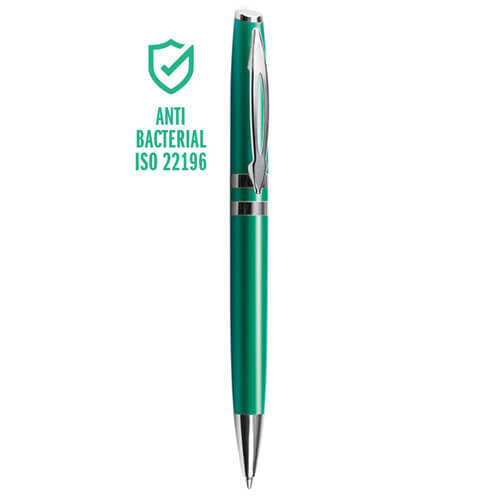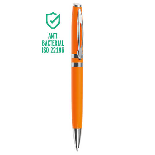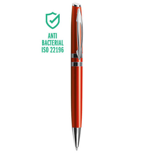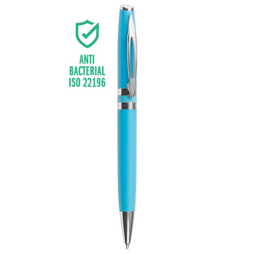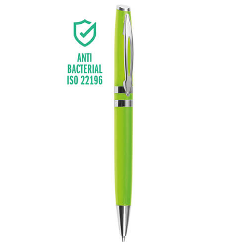 Penna a Sfera con Meccanismo a Rotazione e Finiture in Metallo Cromato: Questa elegante penna combina un corpo in plastica colorata con finiture in metallo cromato e un refill con sfera al tungsteno per una scrittura fluida e precisa. Perfetta per la personalizzazione.