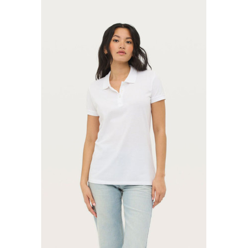 Polo donna manica corta – Vestibilità perfetta e femminile: nuova lunghezza e taglio aderente Destinato a tutti i tipi di mercato – Collo e giromaniche a costina 1x1 Nastro di rinforzo sul collo Maniche corte 3 bottoni in tinta Tagliata e cucita Punto vita sfiancato Bottone di ricambio cucito all'interno