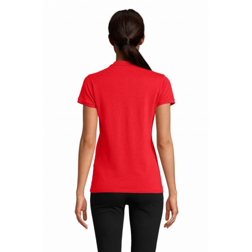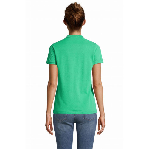 Polo donna – Articolo con un eccellente rapporto qualità /prezzo. Vasta gamma di colori disponibili. – Collo e fondo manica a costina Nastro di rinforzo sul collo Patta rinforzata Maniche corte Patta con 3 bottoni tono su tono Fondo dritto Tagliata e cucita Bottone di ricambio cucito all'interno
