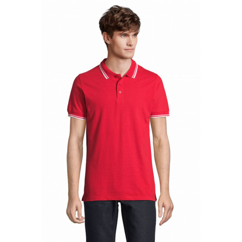 Polo uomo manica corta – Sempre attuale e moderno Vasta gamma di colori Destinato a tutti i tipi di mercato – Collo e giromaniche a costina Nastro di rinforzo sul collo Maniche corte Collo e giromaniche a righe in contrasto 3 bottoni in tinta Taglio aderente Tagliata e cucita Fondo del capo dritto con spacchi laterali Bottone di ricambio cucito all'interno