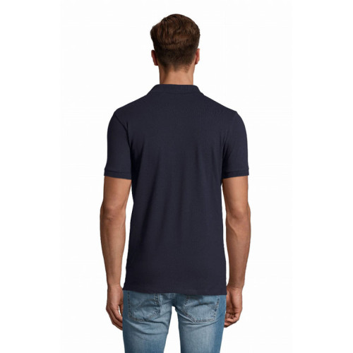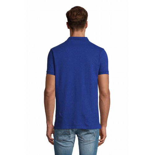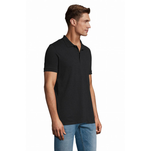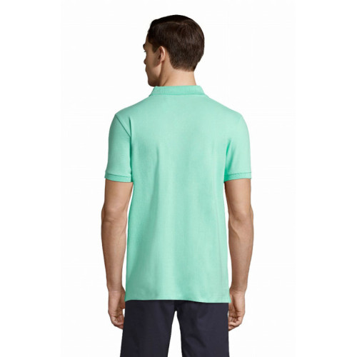 Polo uomo manica corta – Collo e giromaniche a costina Nastro di rinforzo sul collo Maniche corte Taglio aderente 3 bottoni in tinta Spacchi laterali Tagliata e cucita