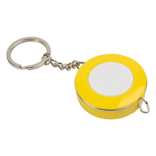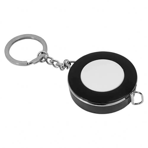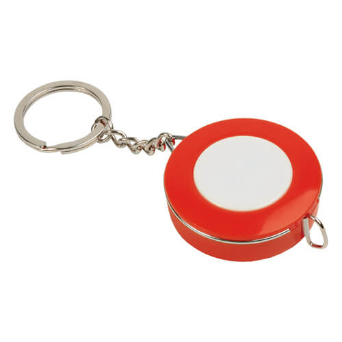 Flessometro riavvolgibile, con portachiavi, 1.5 metri, matreiale abs - diametro cm 2,30 - metro con doppia scala centimetri e pollici - colori disponibili: bianco, nero, rosso, blu giallo.